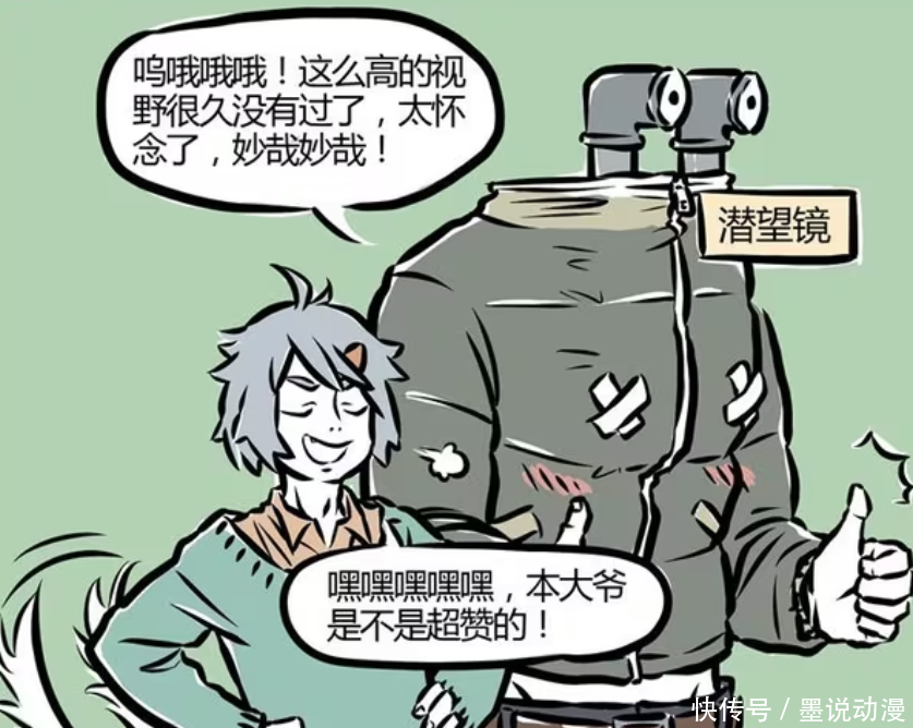 哮天采购了潜望镜的原材料,其实就是水管和镜片。能够想到这一点,哮天可以被称为天才。刑天不用担心眼泪会影响视觉,还能有这么高的视野。此时的刑天,都觉得自己跟远古时期一样,这种感觉那是相当不错。哮天也觉得自己很厉害,刑天的情绪价值也拉满了。