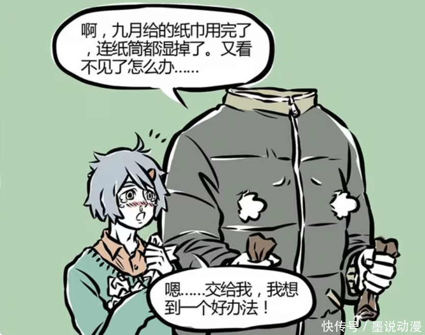 九月为刑天准备的卷纸,全部被刑天用来擦眼泪。纸筒全部湿掉,刑天现在又变得跟之前一样。那么刑天该怎么办?这时候就要靠哮天,他的方法是九月的升级版,看到2.0版本上线。